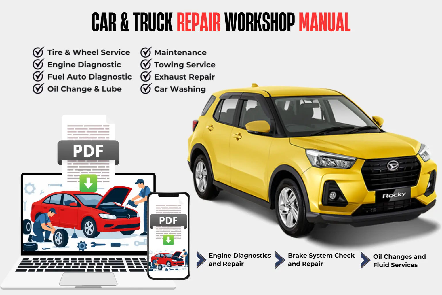 - Answer: This 1992 Daihatsu Rocky repair manual provides step-by-step service procedures, maintenance guides, wiring diagrams, and troubleshooting information for your vehicle model. It’s a complete factory-grade PDF version used by professional technicians.